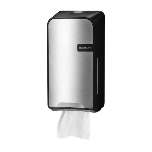 De QuartzLine bulkpack toiletpapierdispenser in zilver is een efficiënte en duurzame oplossing voor drukbezochte sanitaire ruimtes. Deze dispenser werkt met losse toiletpapiervellen en beschikt over een vel-voor-vel uitgifte, waardoor het papierverbruik aanzienlijk wordt gereduceerd.