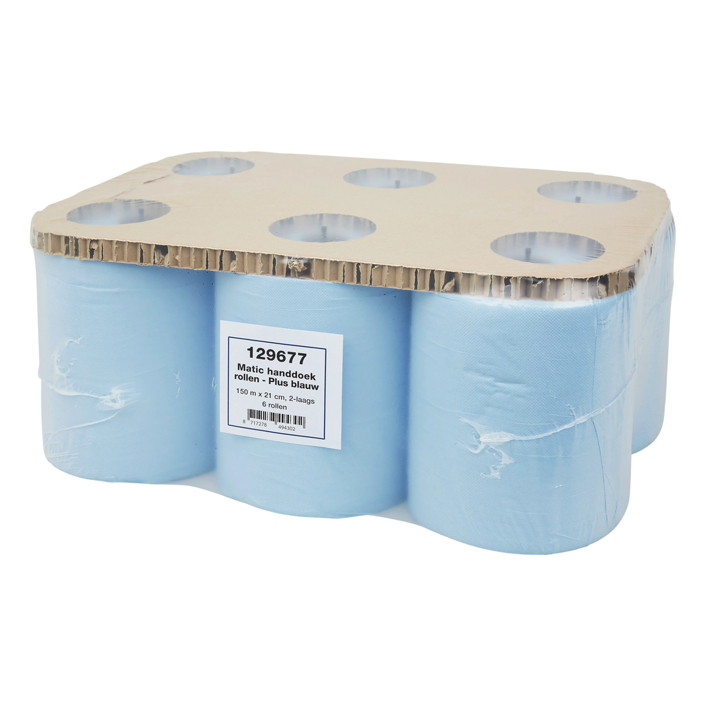 De Matic Plus handdoekrol is 2-laags uitgevoerd en heeft een lengte van 150 meter per rol. De blauwe kleur maakt dit product geschikt voor gebruik binnen HACCP-omgevingen, zoals horeca, voedselverwerking en industriële keukens.