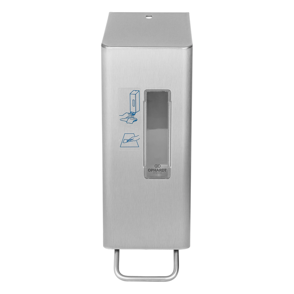 De dispenser is voorzien van een RVS bedieningshefboom, een kijkvenster voor eenvoudige vullingcontrole en een sticker met duidelijke gebruiksaanwijzing. Hierdoor is de dispenser zeer gebruiksvriendelijk en ideaal voor toepassing in kantoren, horeca, zorginstellingen en openbare sanitaire ruimtes.